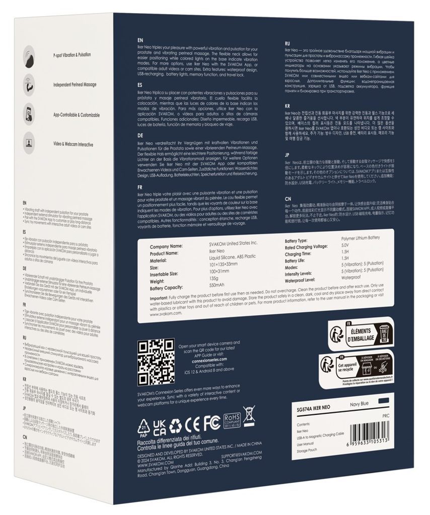 | Špeciálne funkcie | 2 vibračné motory, Mobilná aplikácie, Diaľkové ovládanie |